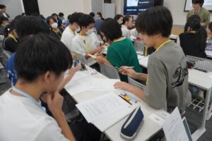 最後に「科学記事を読みこなす:地球の未来を考える討論会」が行われ、受講生は小グループに分かれて配布された科学記事を読み、感想を共有した後にグループごとの発表に向けて討論しました。